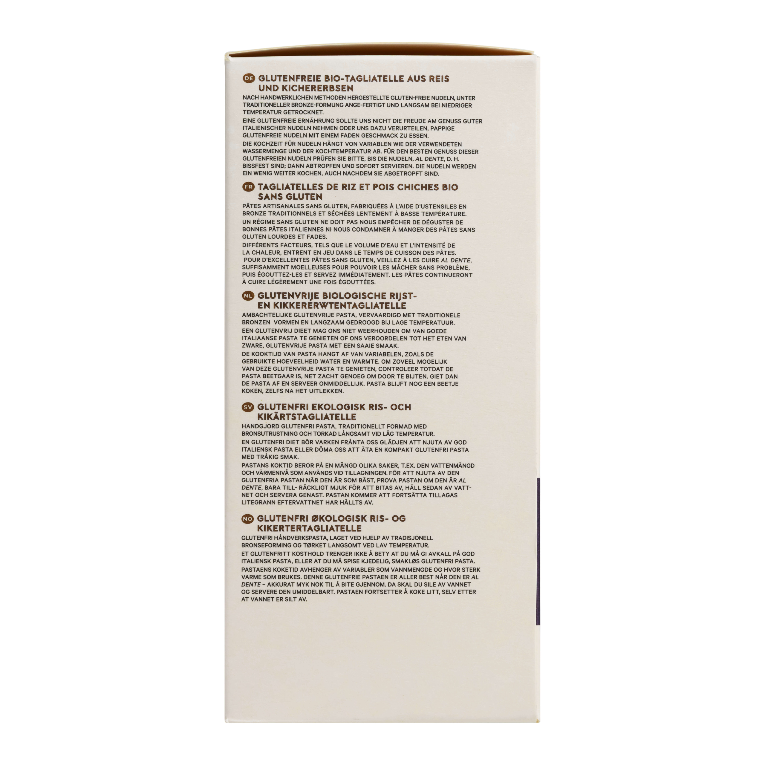 A gluten free, organic ribbon pasta made with chickpea and rice flour. Gently nutty, naturally warm, and artisan crafted.