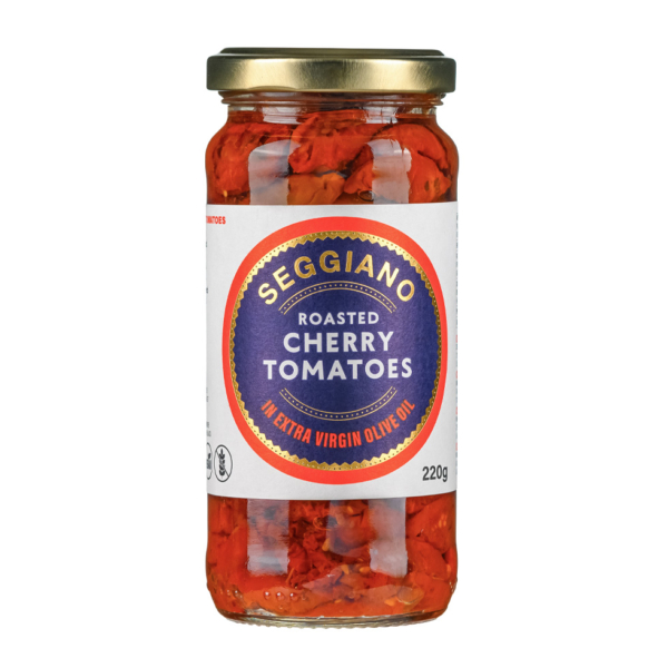 Irresistibly soft and delicious cherry tomatoes preserved in extra virgin olive oil and seasoned with garlic, sea salt and oregano. Enjoy as antipasti and add them to a wide range of dishes.